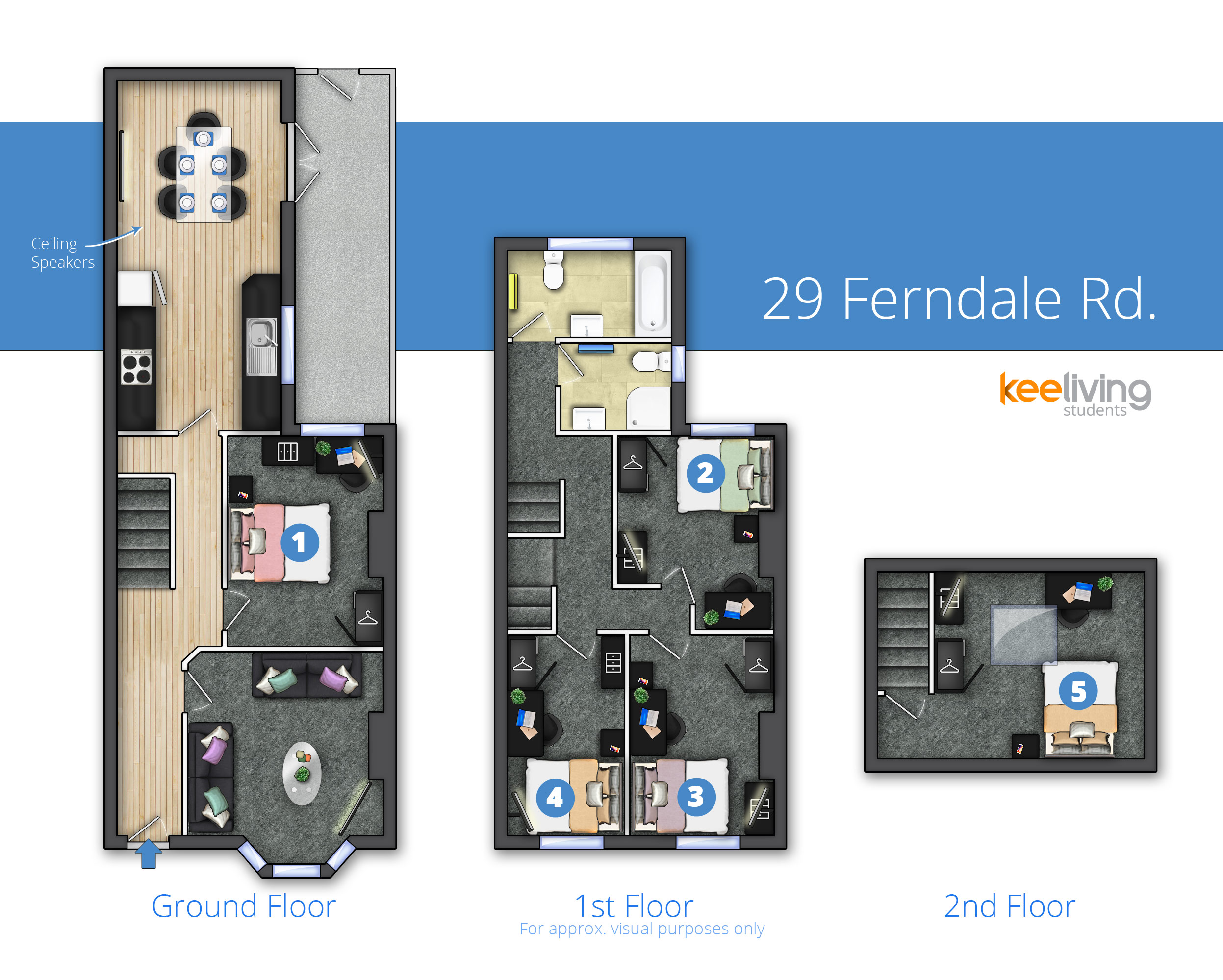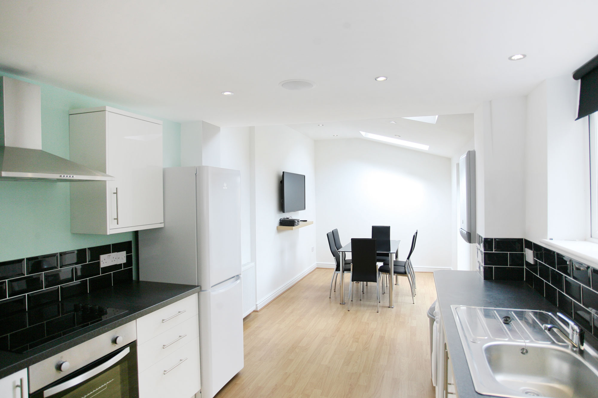 A fantastic 5 bed property with a modern interior tailored for the student lifestyle. The spacious rooms are kitted with 24" mounted TVs with integrated DVD players. There are two modern, stylish shower rooms on the first floor. The large kitchen comes with a dishwasher, washer/dryer and all other kitchen appliances. We have gone the extra mile with the living area and included ceiling speakers with a wall mounted 47" TV!