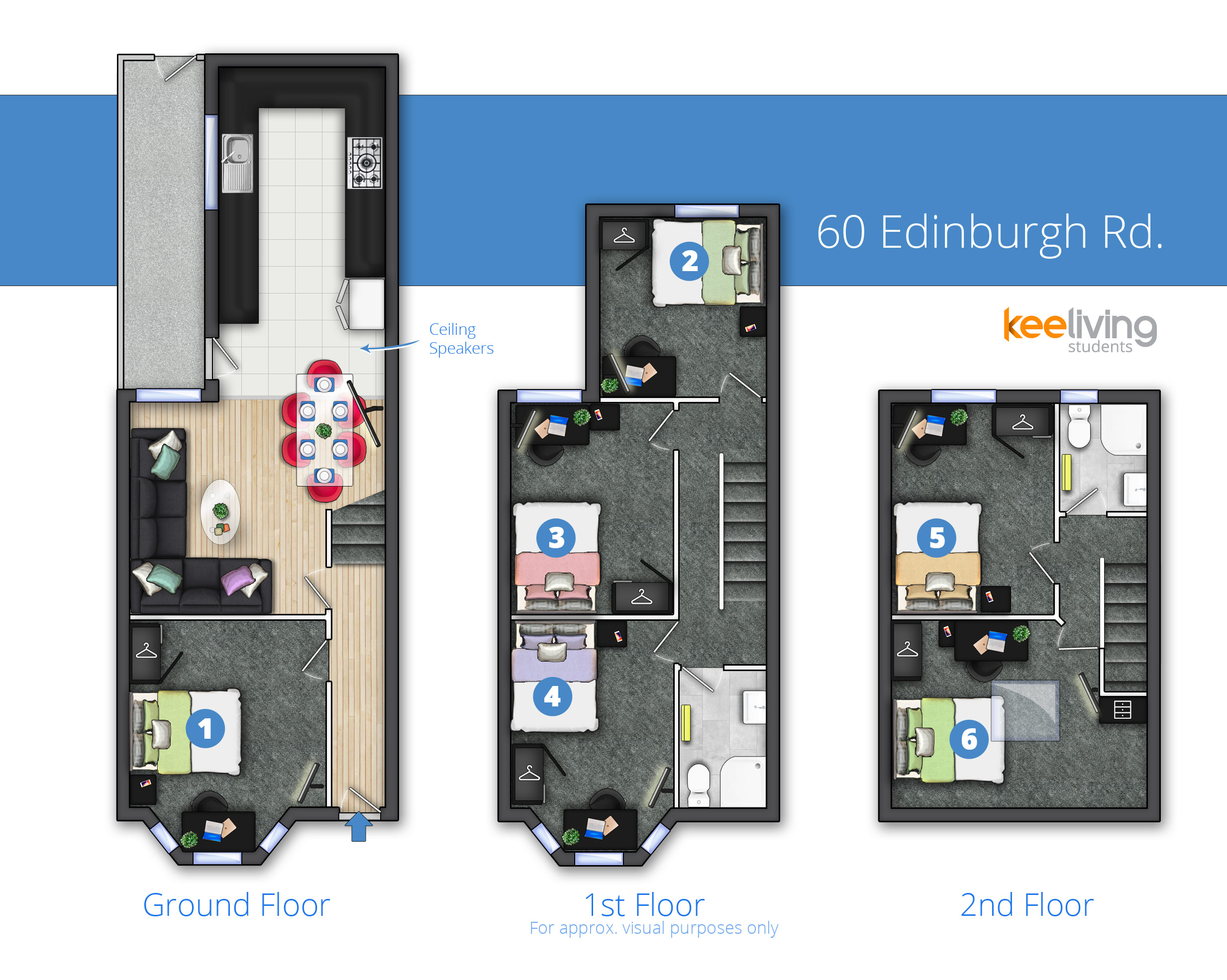 A fantastic 6 bed property perfect for the student lifestyle. The bedrooms are kitted with double beds and wall mounted TVs. There are 2 luxury shower rooms. The extended kitchen comes with a dishwasher, washer/dryer and all other kitchen appliances. We have gone the extra mile with the living area and included ceiling speakers with a wall mounted 50" TV.