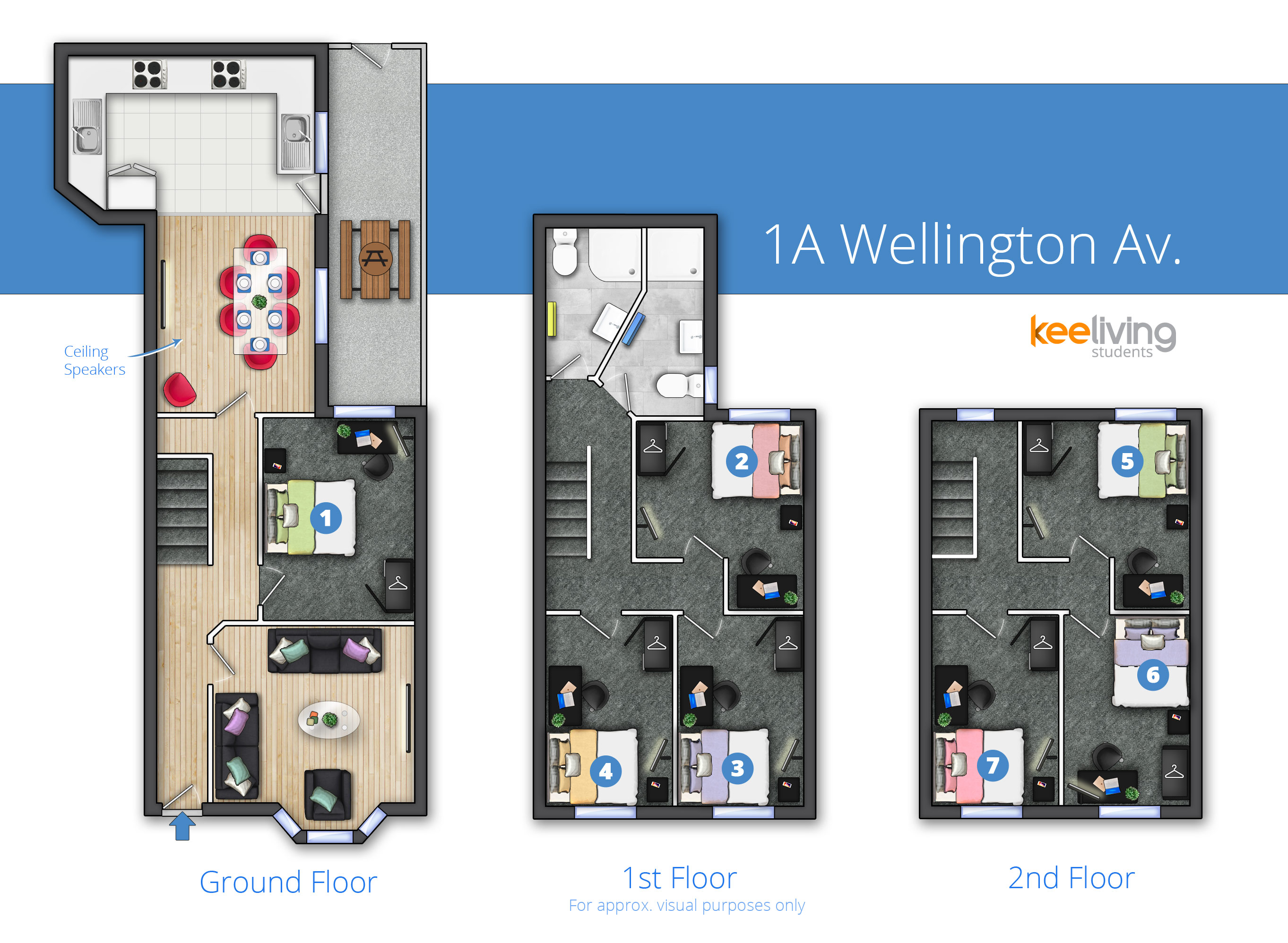 As with all our other properties each bedroom comes with double beds and wall mounted TVs!