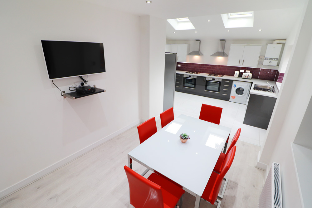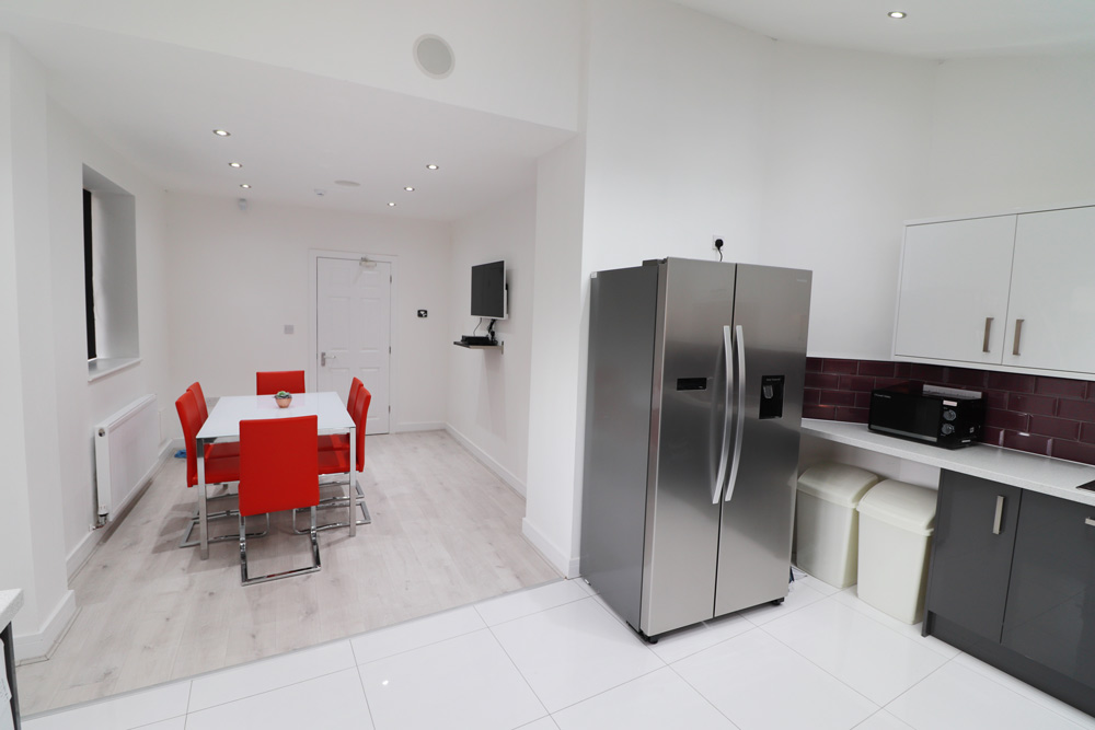 The luxury kitchen diner comes with an american fridge freezer, dishwasher, washing machine and dryer. To go one further we've included a large flat screen TV with ceiling speakers. 2 luxury shower rooms complete the fantastic student house.